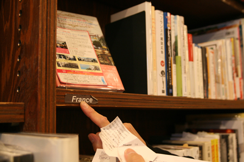5.引用の下に、旅先の国名と番号が書かれています。それを元に旅先の本をお探しください。着陸する本は背表紙が滑走路になっていて、番号がついています。